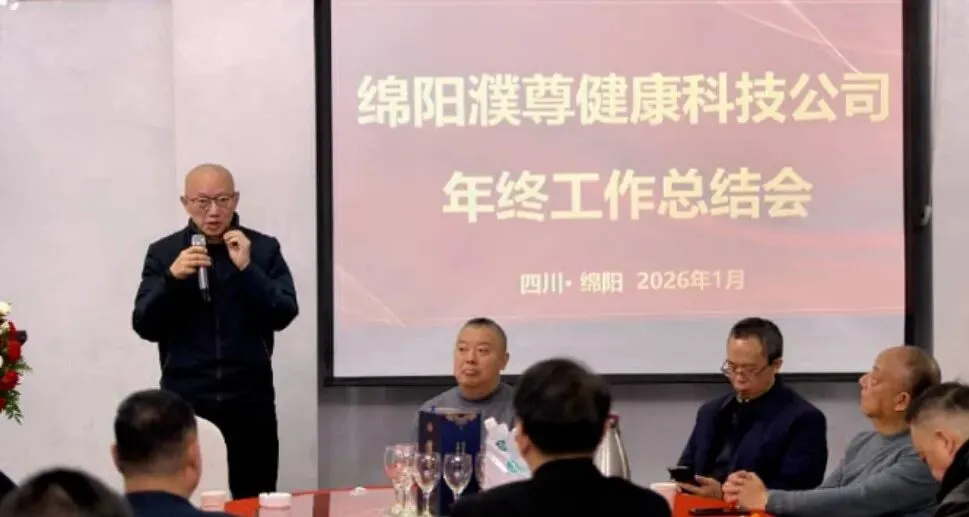 2026年1月28日,绵阳濮尊健康科技公司年终工作总结会召开,市有关领导、公司合作伙伴、公司股东、创始会员及经营班子成员欢聚一堂,共同回顾2025年的奋斗足迹,擘画2026年的发展蓝图,会议由公司副总经理冯旭飞主持。