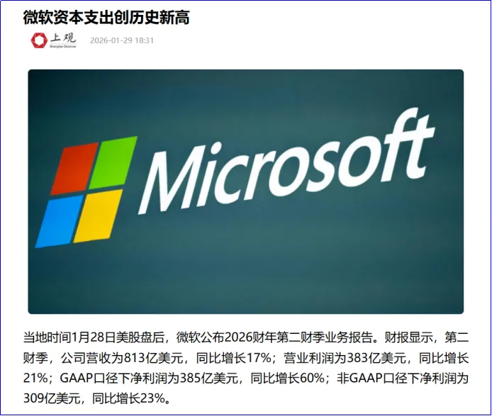 当然AI硬件归来的功劳也不是师兄掏钱拉升了,我觉得主要原因还是微软昨晚的财报。