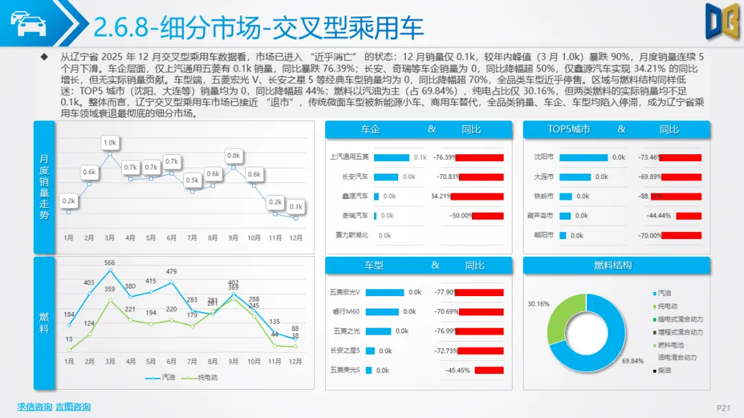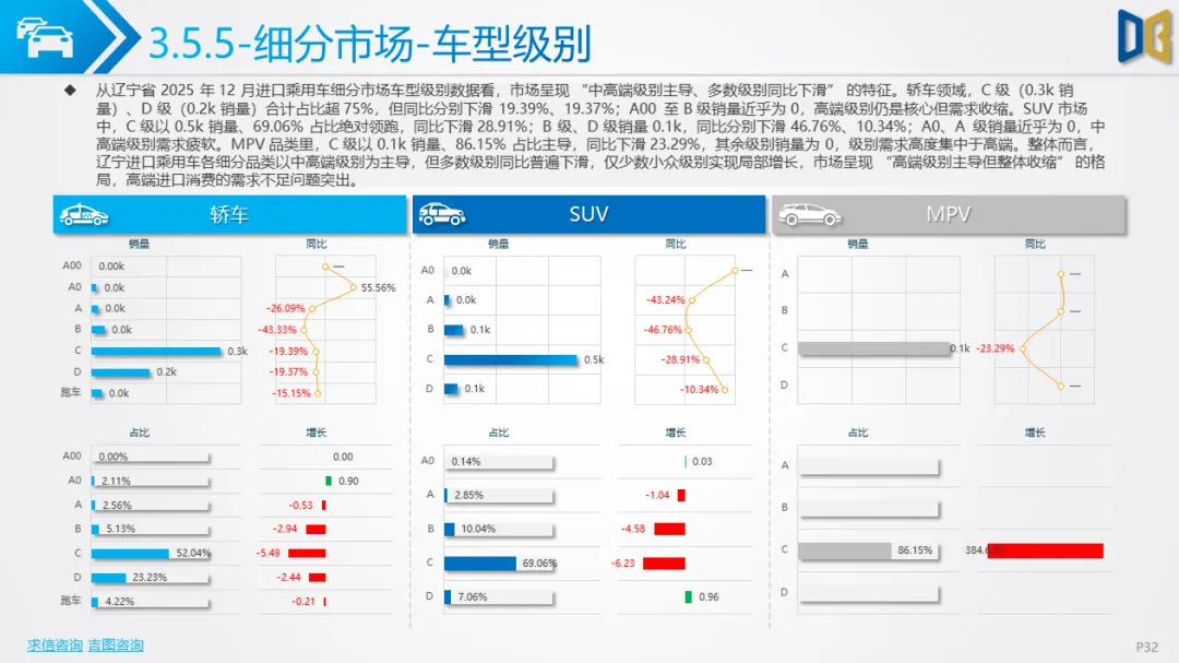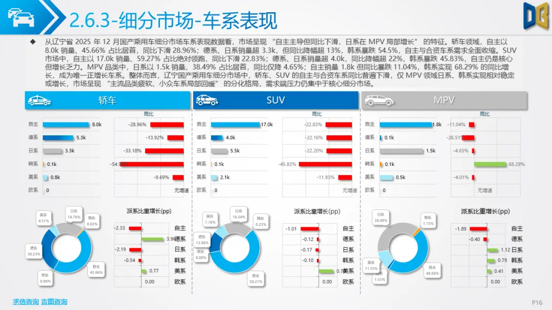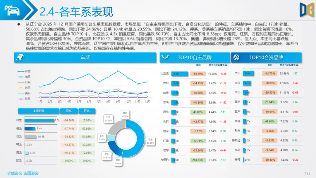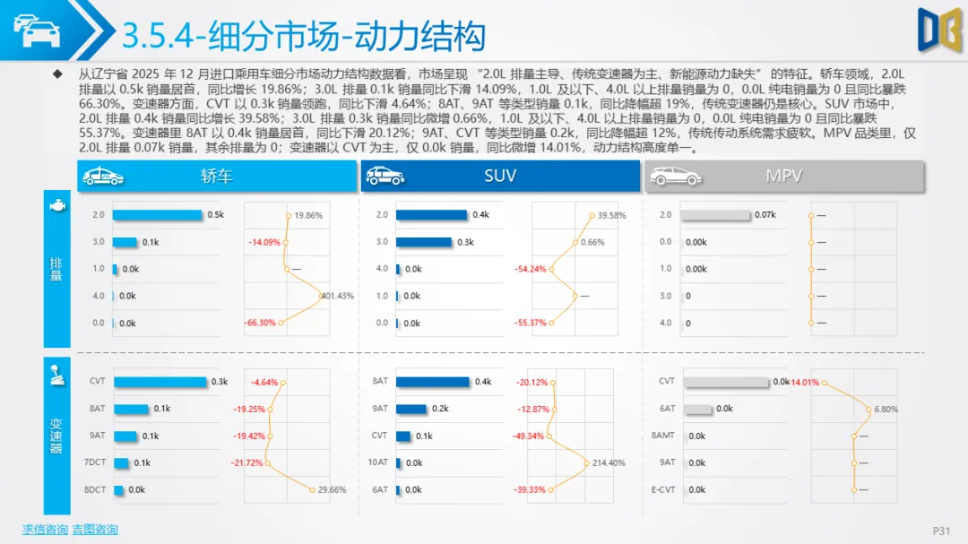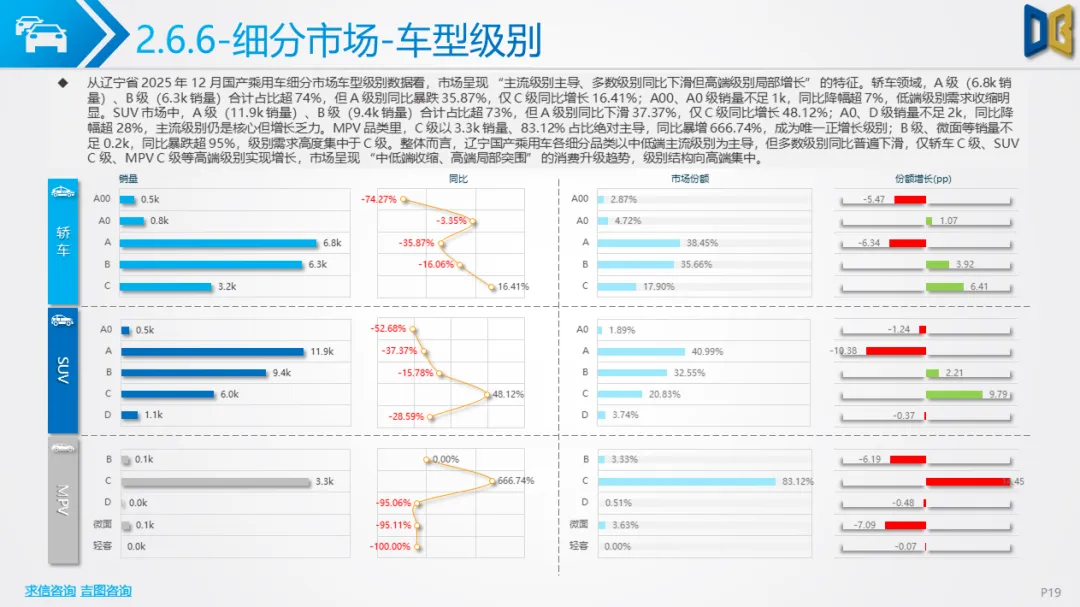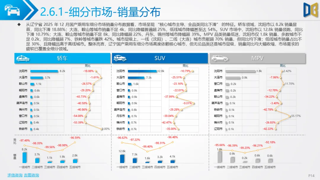 核心品类疲软,细分领域分化辽宁省乘用车市场(含国产与进口)在12月延续了全年的收缩态势,核心品类需求下滑,但局部领域出现结构性亮点。