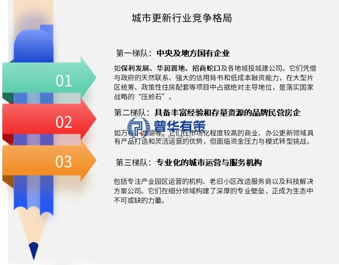 当前中国城市更新市场呈现 “三足鼎立、多元共生” 的竞争格局。