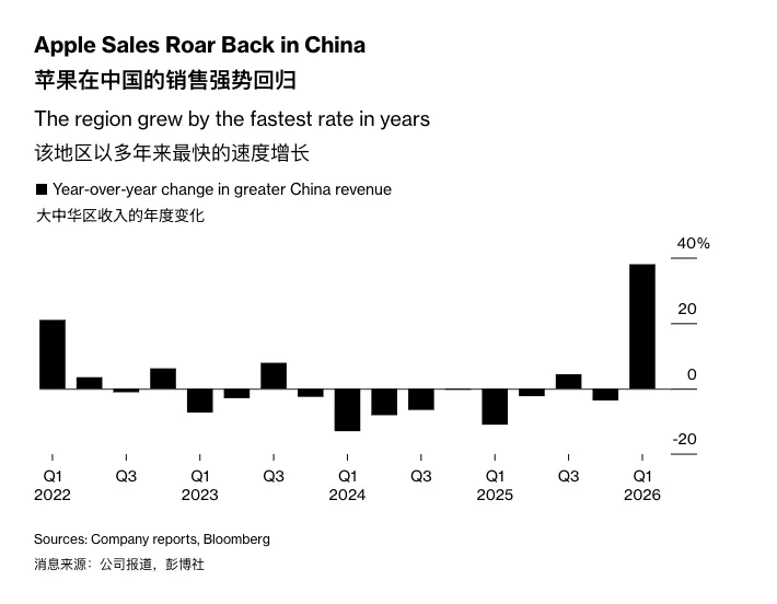 值得一提的是,连续几个季度表现平平的大中华区,终于在新iPhone推出后逆袭:收入255.26亿美元,同比暴涨38%——真香机iPhone 17和iPhone Air,大家都抢到了吗?