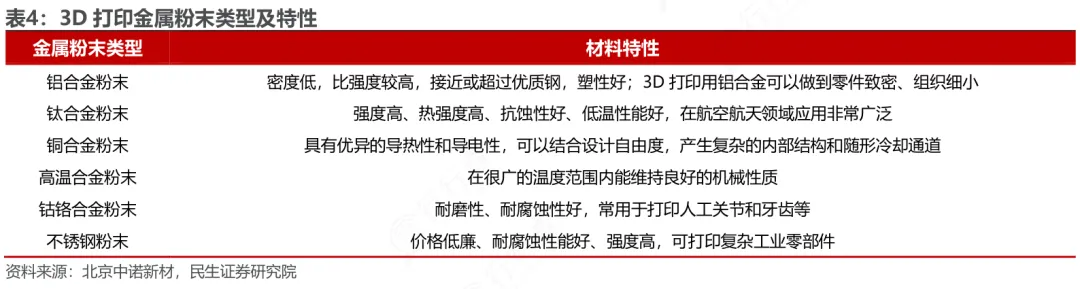 关键耗材以高性能金属粉末为主,包括钛合金、高温合金、铝合金等,需满足高纯度、高球形度、窄粒径分布的要求,适配极端航天环境;同时,专用复合材料、陶瓷材料也逐步应用于卫星载荷等特殊零部件的打印。