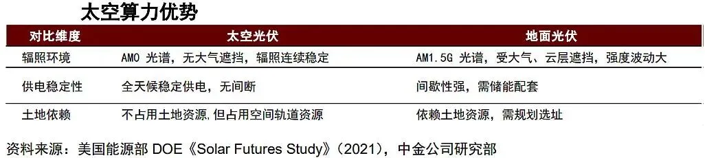 受昼夜交替限制,地面光伏容量系数难以超过50%。太空光伏阵列不受昼夜、季节及天气影响,且可始终保持最佳朝向,其容量系数可达95%以上。发电量显著提升