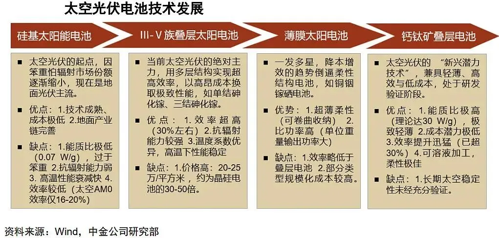 转换效率高、抗辐射性能强,能够承受太空极端环境,已在太空卫星成熟应用。但成本不低、且“锗”在地球上的储量极其有限,如应对大规模太空能源部署,产业链积极寻找更具性价比的替代技术路线。