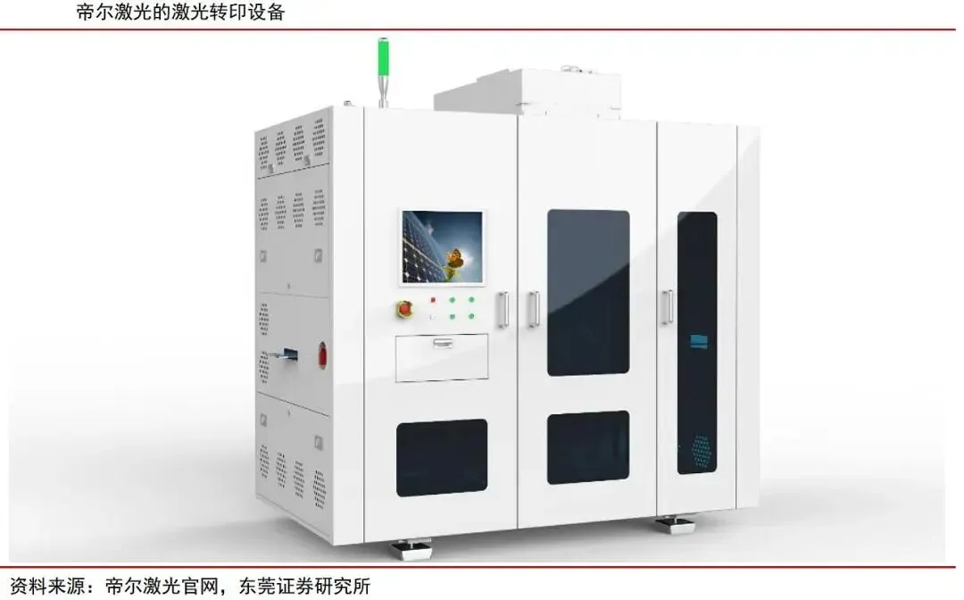 帝尔激光推出的激光转印技术,便是一种适配于TOPCon、HJT、BC等多种高效电池生产的新型非接触式金属化工艺。该技术首先在特制高分子薄膜的沟槽中填充浆料,随后通过高功率激光束精准扫描,将浆料从薄膜转移至电池表面,完成栅线印刷。该工艺具备以下突出优势: