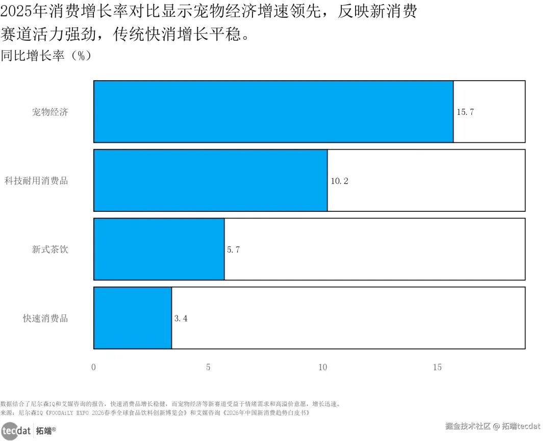 新消费赛道增长率对比图表1 新消费赛道市场规模图表2 县域与乡镇家庭收入储蓄图表3 县域消费者需求偏好图表4 全国区域消费增长图表5 户外消费品类增长率图表7 宠物与婴童消费增长率图表8 服务消费市场规模图表9 服务消费细分行业增长率图表10 数字消费核心规模图表11 智能技术消费渗透率图表12 中国ESG披露率相关图表13 消费市场月度增速折线图表14 90后消费行为指标阴影条形图表15 AI模型处理时间增长多边形条形图表16 Agentic Commerce市场规模热图表17 春节出行相关图表6