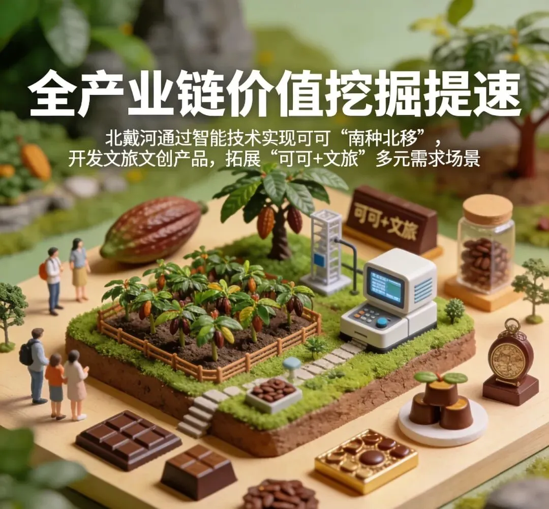 3. 全产业链价值挖掘提速:中国海南推行可可"全果利用"模式,果肉加工成果汁等产品,让75%弃用果实成分实现价值转化;北戴河通过智能技术实现可可"南种北移",开发文旅文创产品,拓展"可可+文旅"多元需求场景。