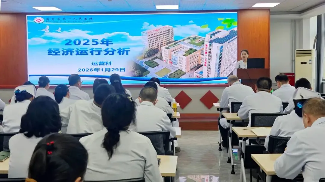 为进一步加强医院经济运营管理,加快补齐内部管理短板和弱项,推动医院可持续健康发展,2026年1月29日下午海东市第一人民医院召开2025年度经济运行分析会,党委书记周栎、副院长党兴宏、李玉芬、范辉忠、纪委书记闫国成及各科室主任、护士长参加了会议。