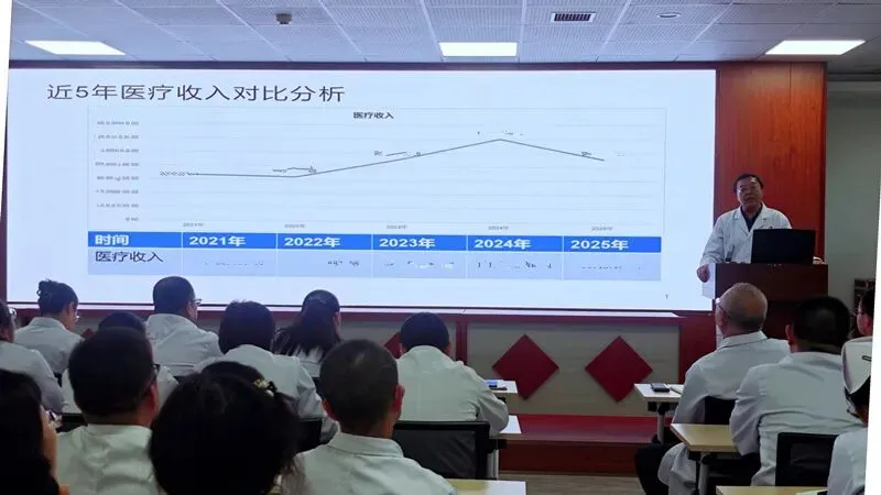 财务科科长吕雅楠就2025年经济运行情况作了分析,总结了2025 年医院运营呈现“门诊向好、住院承压、结构优化、总量不足”的整体特征,对全院收支结构进行了具体的分析对比,并详细剖析临床科室的医疗服务收入、各类支出及科室重点指标情况,从中找出了薄弱环节,并提出各科室要努力在管控成本,优化收入结构等方面下功夫。