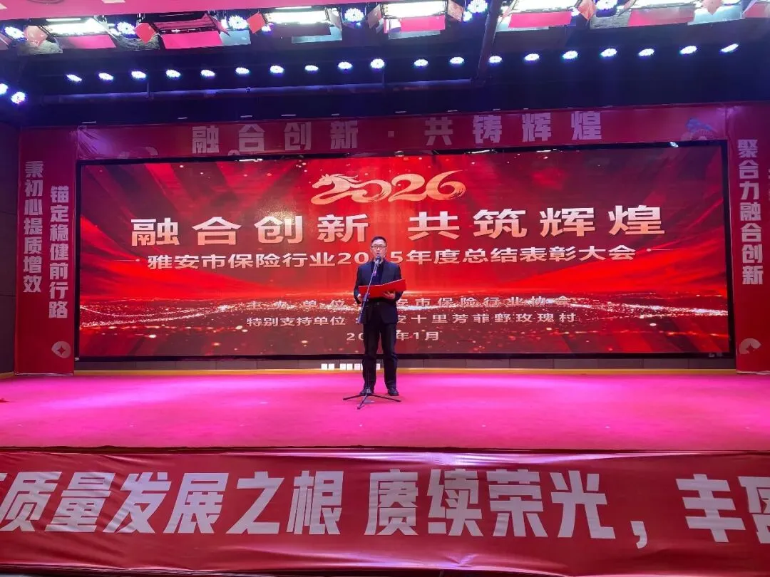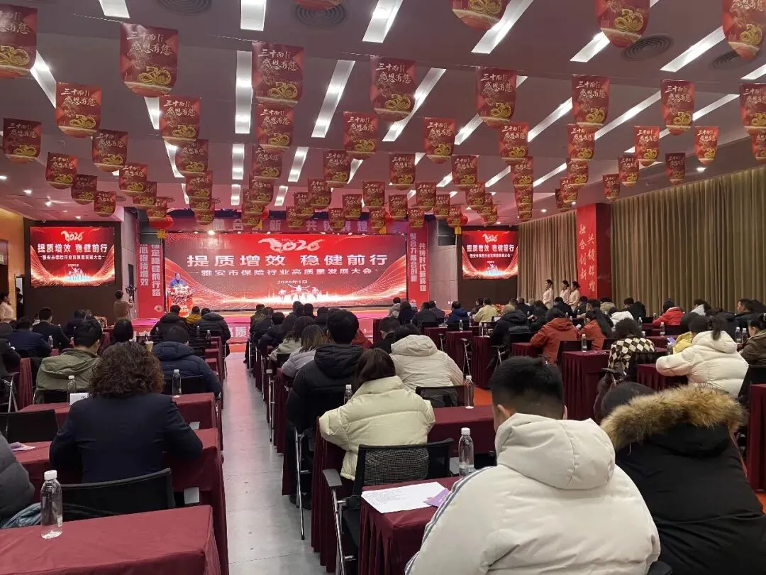 2026年1月29日,“融合创新·共铸辉煌——雅安市保险行业高质量发展大会暨2025年度总结表彰大会”在雅安市中国人寿大礼堂成功举办。此次大会分为两个紧密衔接的环节:首先召开行业高质量发展大会,随后举行隆重的年度总结表彰典礼。会议旨在深入贯彻中央金融工作精神,总结年度工作,表彰先进典型,凝聚发展共识,为雅安保险业新一年的发展明确方向、鼓舞士气。