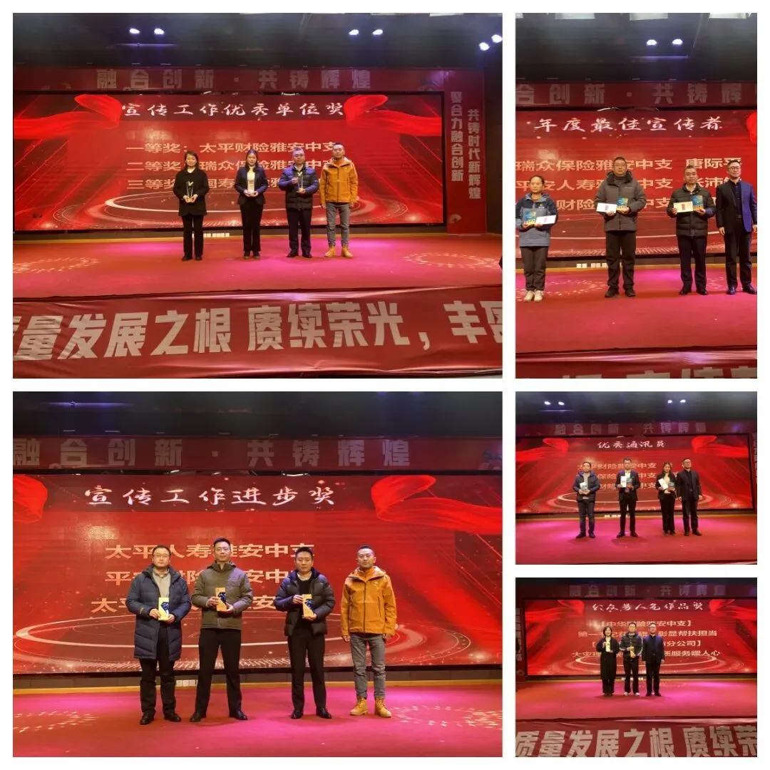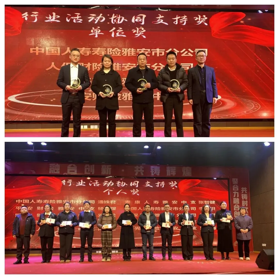 大会表彰了过去一年在全市保险业各领域作出突出贡献的集体与个人。备受瞩目的“雅安保险业高质量发展贡献奖” 依据年度综合贡献评定,人保财险雅安市分公司荣获一等奖,泰康人寿雅安中支与太平洋财险雅安中支获二等奖。“清廉金融文化建设奖” 则花落中国人寿雅安市分公司(一等奖)、太平人寿雅安中支及泰康人寿雅安中支(二等奖)等一批在廉洁机制与文化培育方面成效显著的机构。