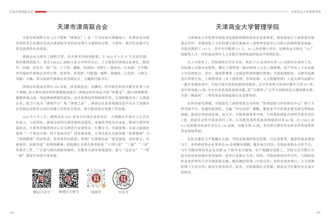 日前,在中共天津市委统战部、天津市工商联指导下,由天津市津商联合会牵头,天津商业大学管理学院教师王庆、曹晓丽、王艳芝、刘盟、刘祎康、姚鹏编制的《津商企业发展白皮书》正式向全社会公布。