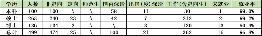 2025届本科生毕业生选择国内深造58人,出国(境)深造11人,总深造率69%;直接就业10人,占比10%。