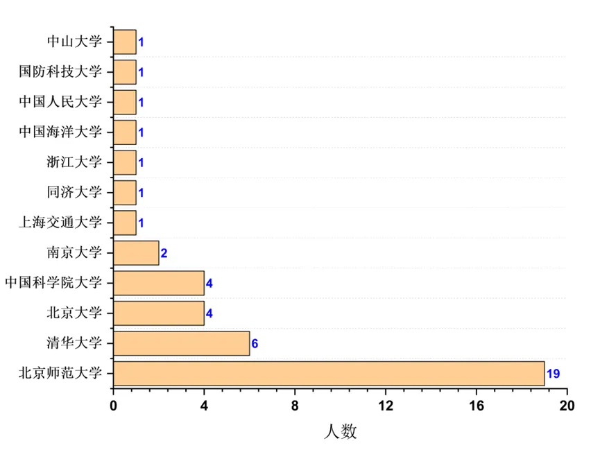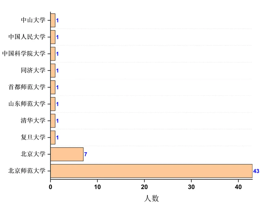2025届硕士毕业生选择国内深造主要倾向于本校升学,42人中有19人选择继续在北京师范大学深造,占比达45.2%;选择进入其他院校深造的毕业生:清华大学6人、北京大学4人、中国科学院大学4人、南京大学2人,其余七个院校各1人。