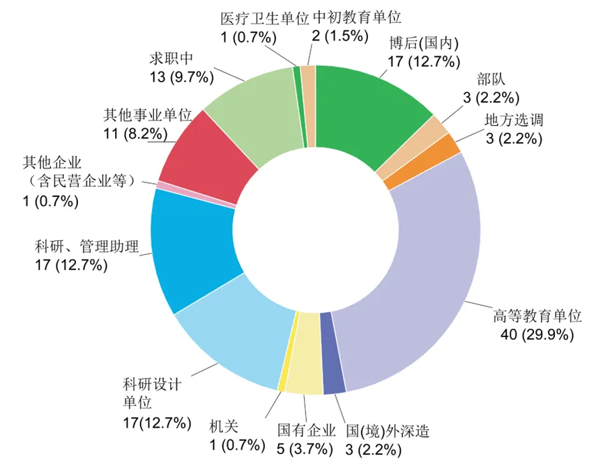 2025届博士毕业生国内博后入站本校6人,入站北京大学、清华大学等其他11所院校各1人;3人出国(境)前往新加坡国立大学、千叶大学、密歇根大学安娜堡分校进行深造。