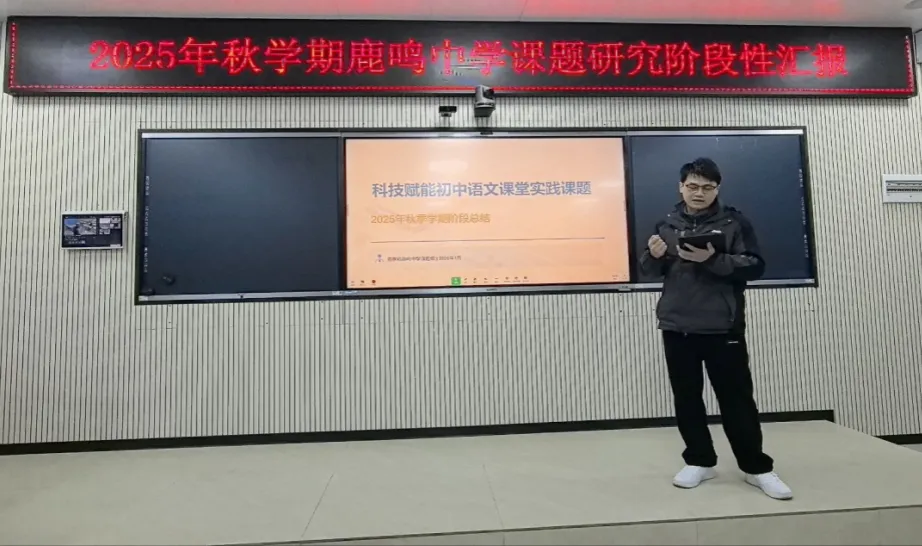 《科技赋能初中语文课堂实践》课题组面向2个年级4个班级开展研究:通过学情调研精准定位4大教学痛点,梳理相关文献并筛选4款适配AI工具;开发12个覆盖古诗词、阅读、写作及跨学科领域的完整课例,形成配套资源包;创新实践“课前AI预习—课中多模态互动—课后个性化巩固”三段式教学模式,累计积累82课时实践数据;搭建三维评价框架并完成首轮数据采集。同时,同步推进论文、课例视频等物化成果积累,明确补齐计划,为后续研究深化筑牢基础。