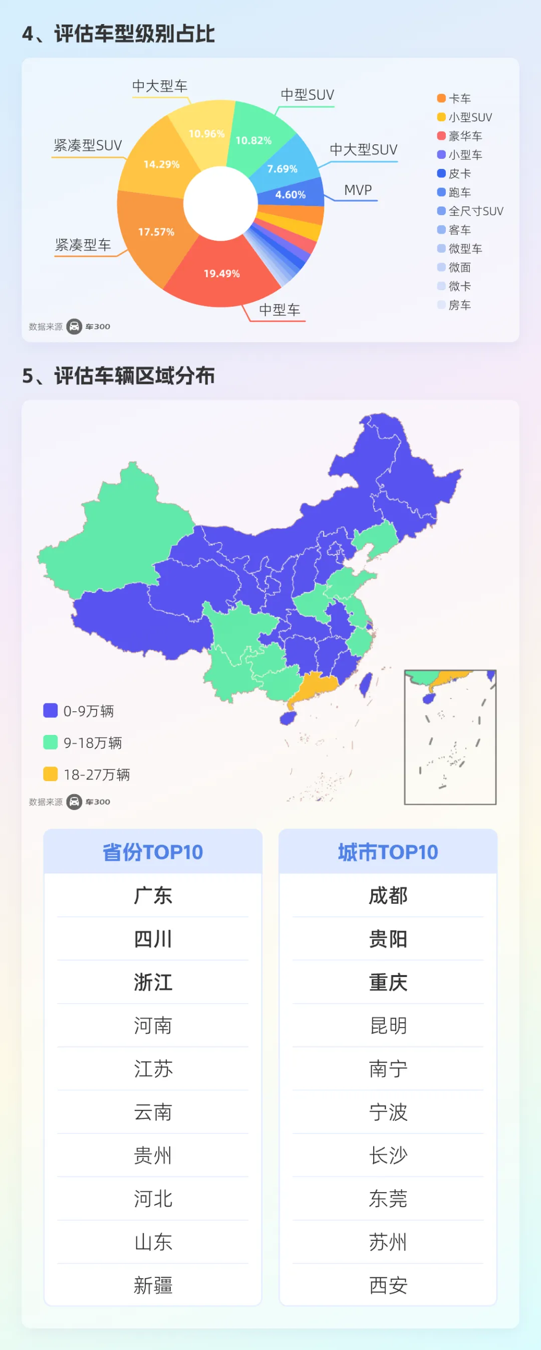 城市层面,成都、贵阳、重庆、昆明等西南地区核心城市位居前列,反映出车源从高线、沿海地区向中西部高效流转的路径。
