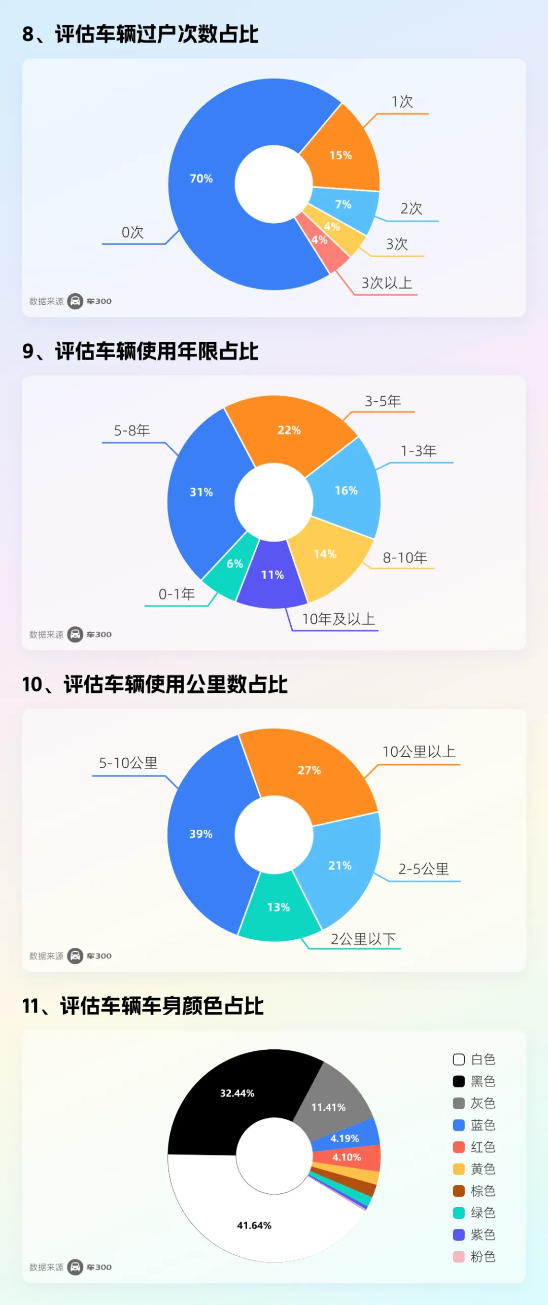 权属与车龄:高达70%的车辆为0次过户的“一手车”,车龄以5-8年(占比31%)为主。