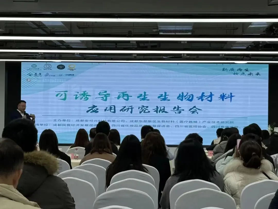 近日,由成都安可兴科技有限公司主办,四川省化妆品质量发展促进会、四川省医师协会、四川泰康医院、生物慧支持的“新质再生·妆点未来——可诱导再生生物材料应用研究报告会”在成都民营经济发展中心举行。