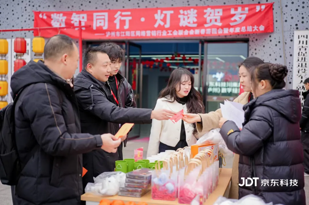 2026年1月28日下午,泸州市江阳区网络营销行业工会联合会在京东(泸州)数字经济示范园路演厅举办“数智同行 灯谜贺岁”新春游园会暨年度总结大会。吸引了行业工会多家会员企业共70余名职工踊跃参与,在欢声笑语中共迎新春佳节、共话行业发展。