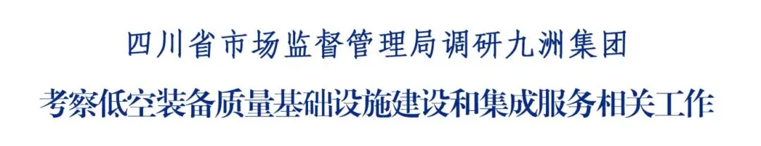 1月29日,四川省市场监督管理局党组成员、副局长高晓宇一行赴九洲集团开展专项调研,重点考察公司产业发展、新产业培育、科技创新及低空装备质量基础设施建设与集成服务工作推进情况。九洲集团党委委员、总工程师田殷陪同调研及座谈。