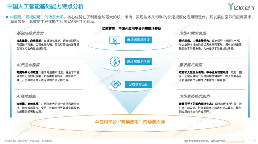 凭借全球最大的统一市场、海量数据与高效工程化能力,专注于技术从1到N的快速规模化落地。发展由强烈的应用需求和国家战略共同驱动,在消费互联网、智能制造等领域催生了大量特色应用。