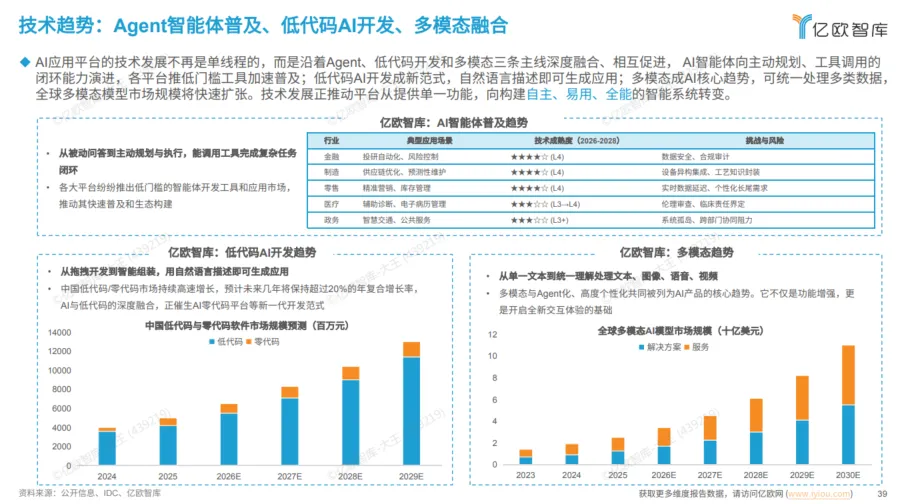 ? 低代码/零代码开发:未来,用自然语言描述需求即可生成应用,极大降低AI开发门槛。预计中国低代码市场将保持20%以上的年增长率。