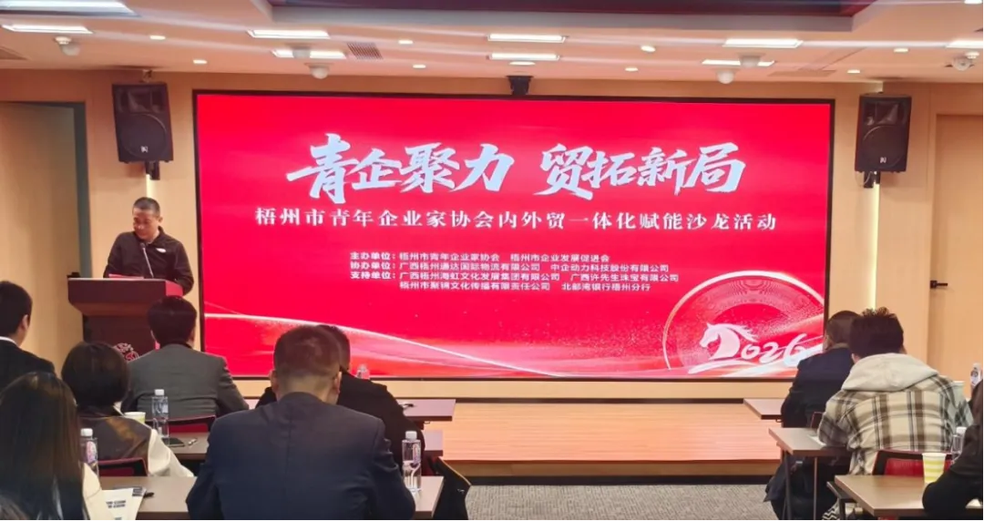 为深度破解企业发展瓶颈,助力本土企业抢抓政策机遇,提升内外贸一体化营销与运营能力,1月29日下午,梧州市企业发展促进会联合市青年企业家协会在梧州市党群服务中心成功举办“青企聚力 贸拓新局”内外贸一体化赋能沙龙,近30名企业代表齐聚一堂,共探高质量发展路径。