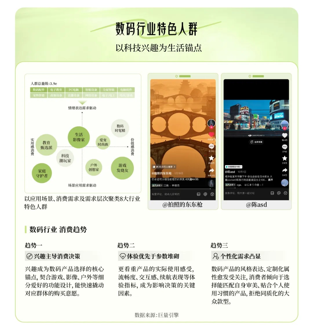 在抖音,超6亿日活用户共同勾勒出一幅丰富、立体、流动的人群图谱,那个在直播间抢购美妆的“成分党”,可能同时也是痴迷二次元手办的“收藏家”;那个在评论区认真研究数码参数的“硬核极客”,转身就成了在乡野视频里寻找松弛感的“梦想家”。人群,不再是静态的标签,而是流动的生活剧本,他们有自己的话语体系与生活场景。