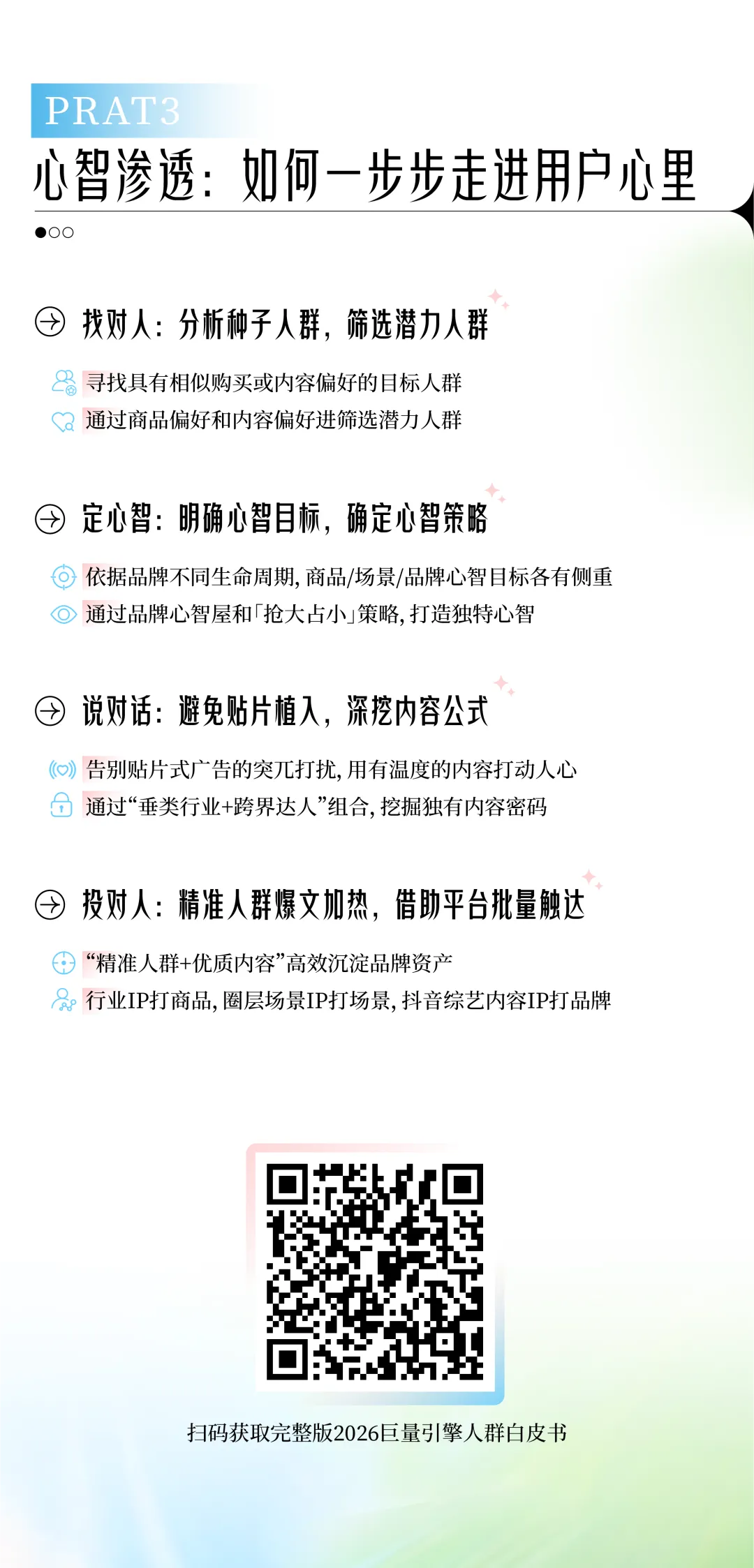 真正的增长,始于对人的深度洞察。白皮书以“人”为核心,系统拆解抖音人群、圈层生态与心智沟通策略,为品牌提供从洞察到触达、从沟通到沉淀的全链路指引,助力品牌在变化中精准锚定方向,展开一场真正同频的对话。