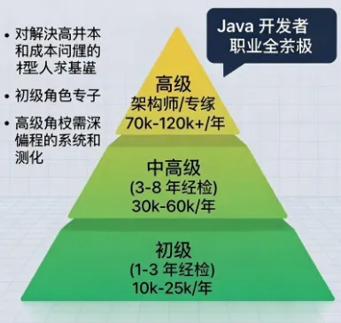 10万 - 25万/年。大厂起薪依旧遥遥领先,可达 25万+,而小厂可能仅 10万 - 15万。 - 中高级(3-8年):