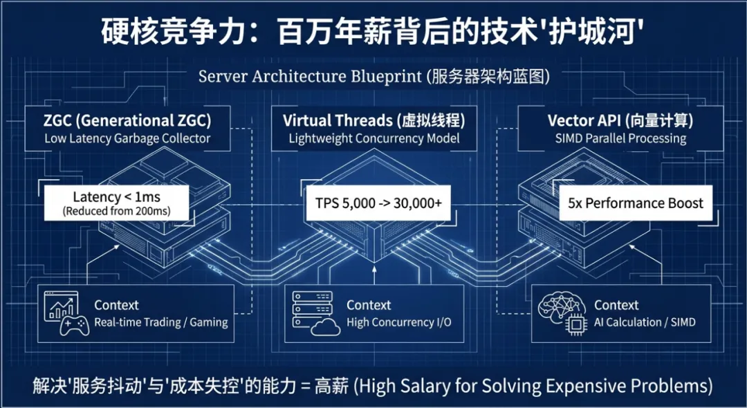 :掌握模型调用、向量数据库或 Prompt 工程。阿里、字节等大厂 AI 相关岗位占比已突破 60%-80%。 - 高性能调优(JVM/GC)