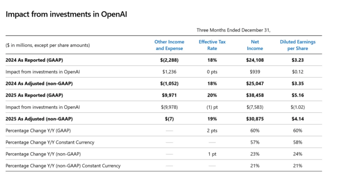 还有一个会计变量。本季GAAP净利润被OpenAI投资的公允价值变动显著拉升,净收益约76亿美元,对每股收益贡献1.02美元。它推高了GAAP利润与GAAP每股收益,但现金并没有因此流入。投资者会更看重可持续经营利润与现金流,所以非GAAP数据更能代表经营质量。