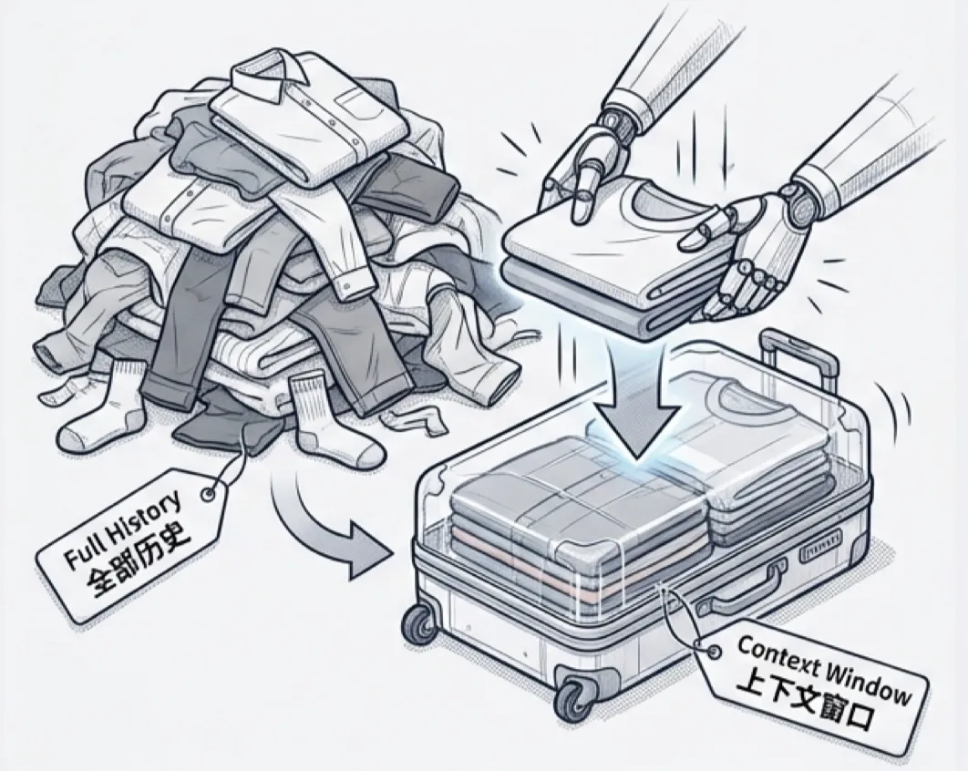 除了预训练数据外,模型对世界的认知、对用户的了解、以及对当前任务的推理,完全受限于你在单次 API 调用中提供的“上下文窗口”(Context Window)。这就引出了 Agent 开发中最核心、也最复杂的工作——Context Engineering(上下文工程)。