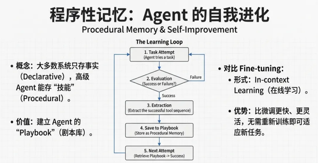 价值:这是实现 Agent 自我进化与在线学习的替代方案,无需微调模型权重即可修正行为。
