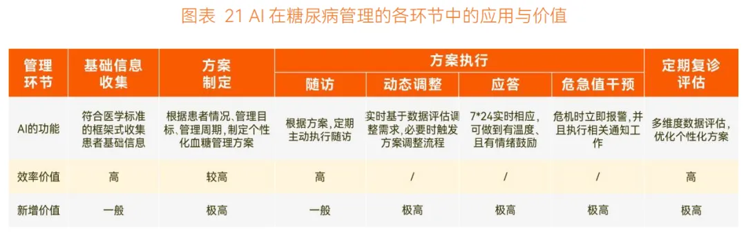 商业价值方面,随着健康管理理念的提升,患者付费意愿逐步增强,各地医保也陆续批准远程管理服务收费编码,相关 AI 应用产品借助健康管理服务收费实现商业化,作为科室提升慢病管理服务质量的 “投资” 被采购使用。