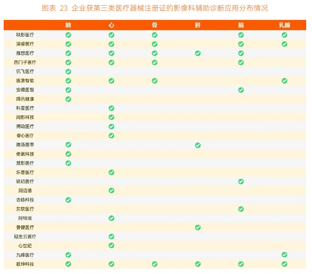 发展趋势方面,国家药监局相关政策为多病种 AI、大模型等新兴技术准入树立道标。多病种辅助诊断在性能上优于多个单病种 AI 连用,但对数据要求更高,依赖准入规则优化,未来 2-3 年内可能迎来准入潮;影像大模型理论上能更好应对多模态精准诊断等复杂场景,但在数据体量上存在天然劣势,国内仅联影智能、深睿医疗等少数企业实现技术突破,联影智能元智医疗影像大模型支持 10 + 影像模态、300 + 影像处理任务,关键任务精准度超 95%,且支持可拆解部署。
