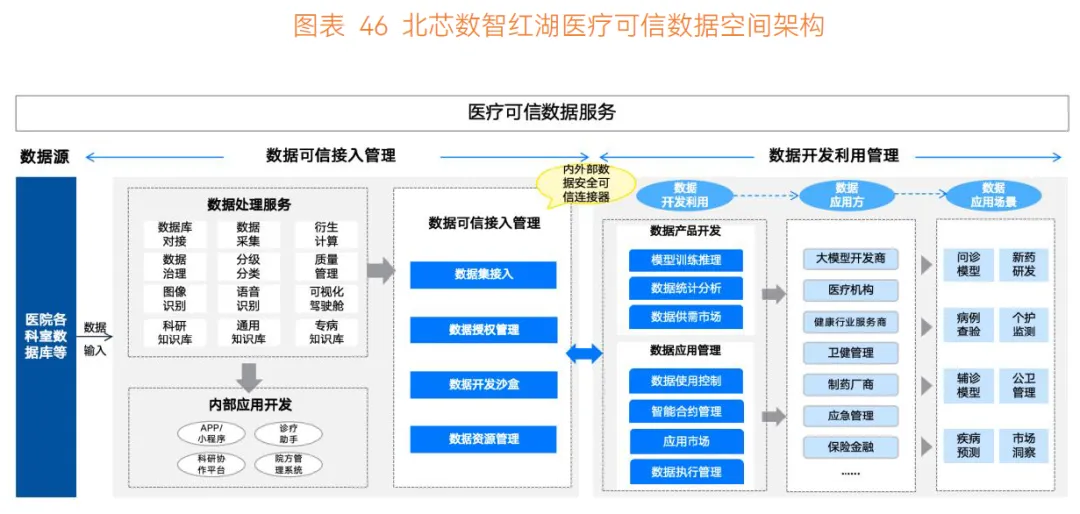 可信数据空间是基于共识规则的数据流通利用基础设施,联接多方主体实现数据共享共用,相较于区块链、隐私计算等技术,其突破在于构建了数据共享信任机制,保障数据接入、使用、溯源全过程的 “可信”,通过严格接入认证和实时管控,切实保障各方数据权益。在医疗健康领域,可信数据空间能帮助医疗机构、药企等各方安全共享各类医疗数据,打破数据孤岛。