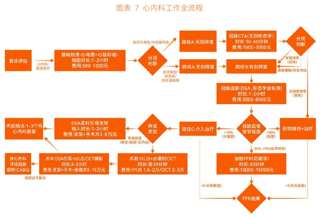 分路径评估中,无创评估首选冠脉 CT,AI 可自动识别血管并命名,完成曲面重建等,帮助医生识别斑块稳定性;有创评估中冠脉造影相关 AI 多由 DSA 设备厂商研发,能借助 AI 降噪和增强,提高信噪比并减少造影剂用量。SYNTAX 评分的 AI 化是行业难点,悦唯医疗研发的 AI SYNTAX 评分系统,依托北京安贞医院超 2W 条真实脱敏数据,实现全程自主创新,已落地 78 家医疗机构,且无遗漏案例。