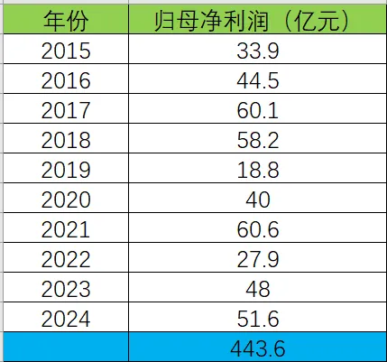 10年合计净利润443.6亿,平均每年44.4亿。2025年已过完但还没出年报,预估2025年利润55亿左右,扣除这次一次性计提的减值21亿,2025年归母净利润为34亿左右。用34亿代替2015年的33.9亿,10年利润总和仍然为443亿。按照All cash is equal的估值基础思想,仍然按无风险收益率3%左右计算,保守给予25倍的合理估值。