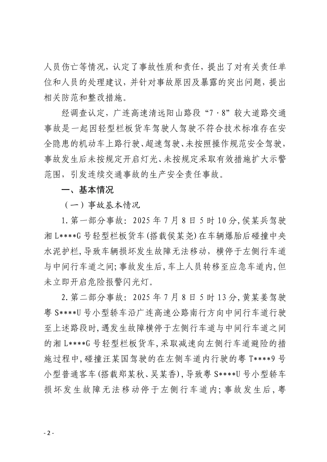经过:黄某姜发现前方故障车辆,采取减速向左侧行车道避险,碰撞左侧车道内汪某国驾驶的车辆,导致粤S车损坏停于左侧行车道。