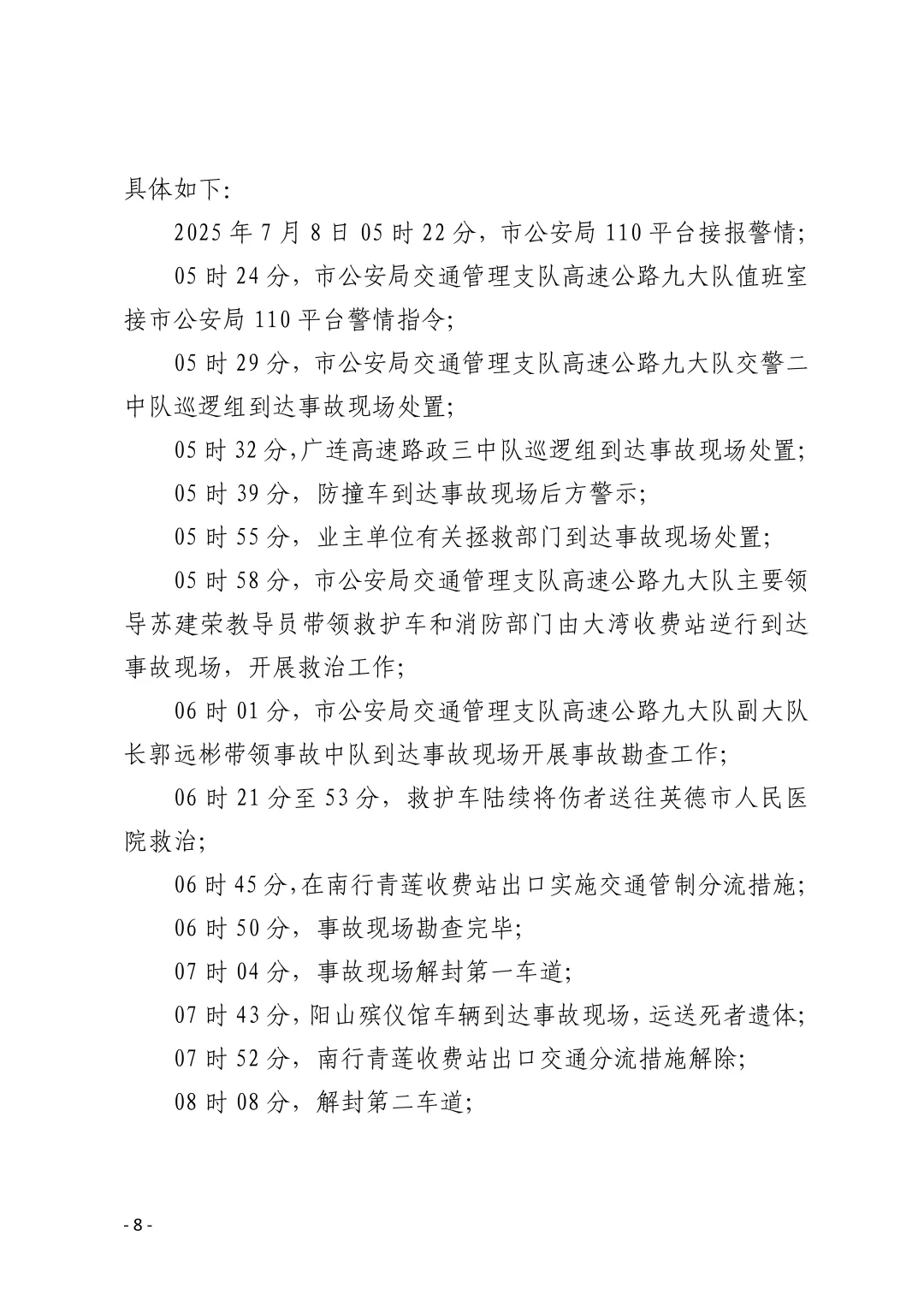 市公安局交通管理支队高速公路九大队:建议移交市纪检监察部门进一步调查处理。