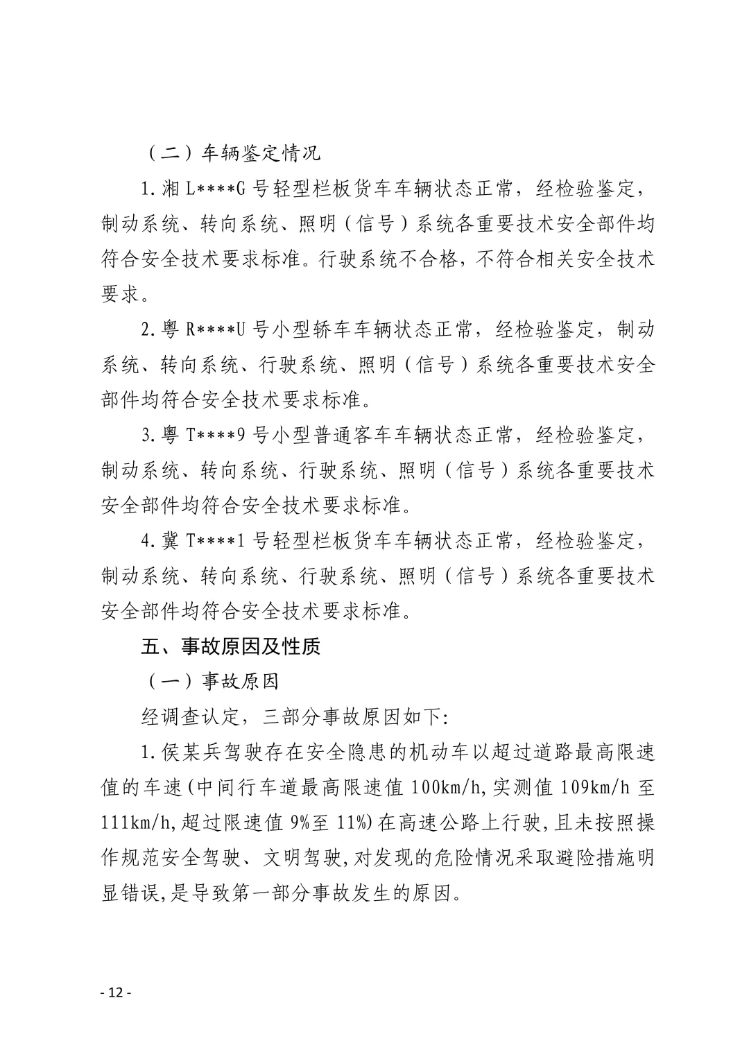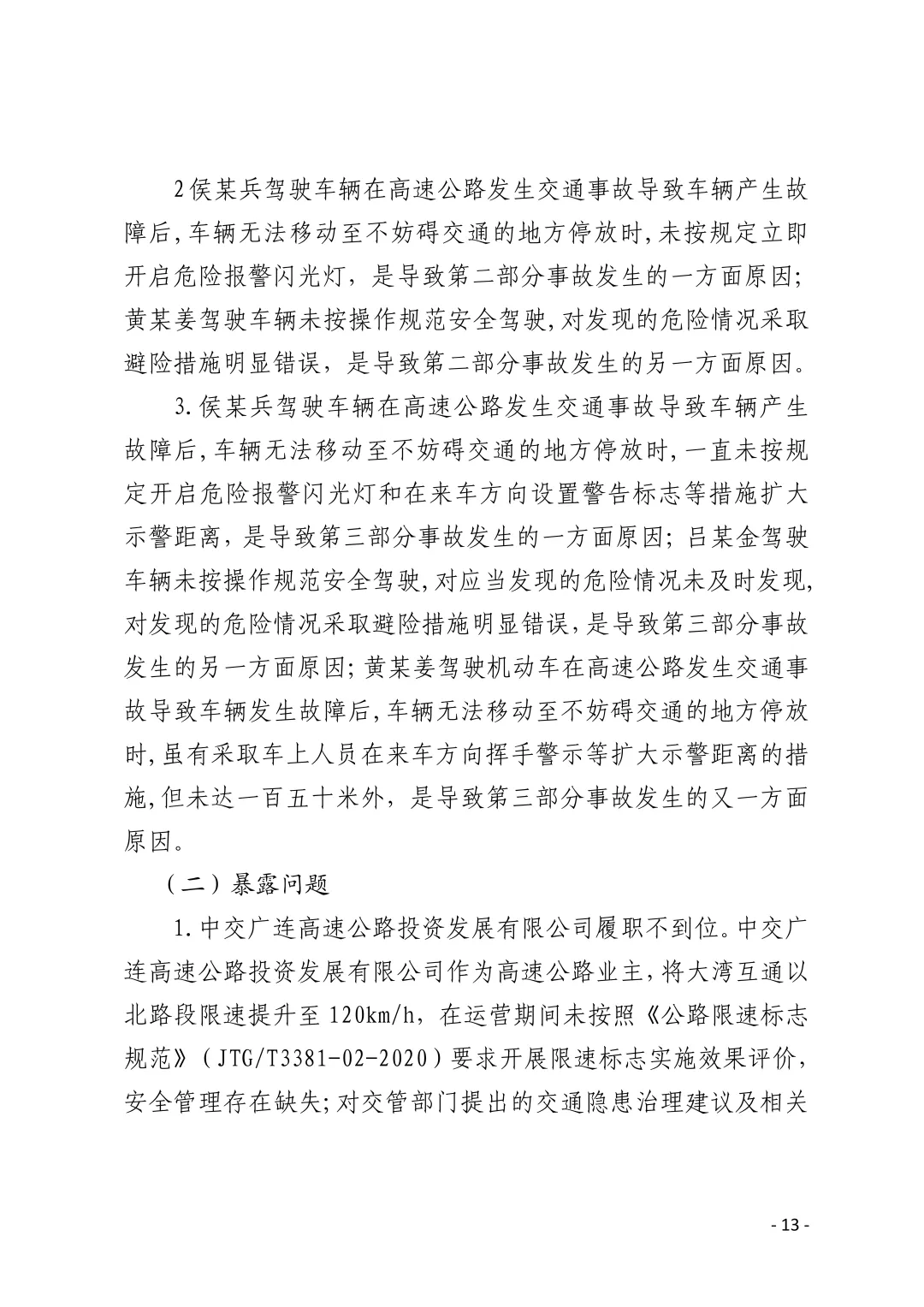 侯某兵:驾驶行驶系统不合格、存在安全隐患的机动车;超速行驶(中间行车道限速100km/h,实测109-111km/h,超速9%-11%);未按操作规范安全驾驶,避险措施明显错误;事故发生后持续未开启危险报警闪光灯,未在来车方向设置警告标志扩大示警距离。
