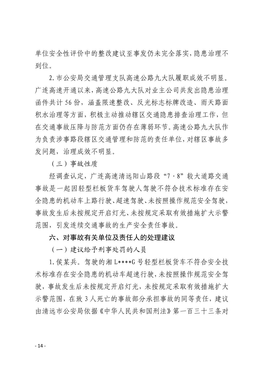 侯某兵、吕某金::在致3人死亡事故中承担同等责任,建议依据《刑法》第133条追究刑事责任。