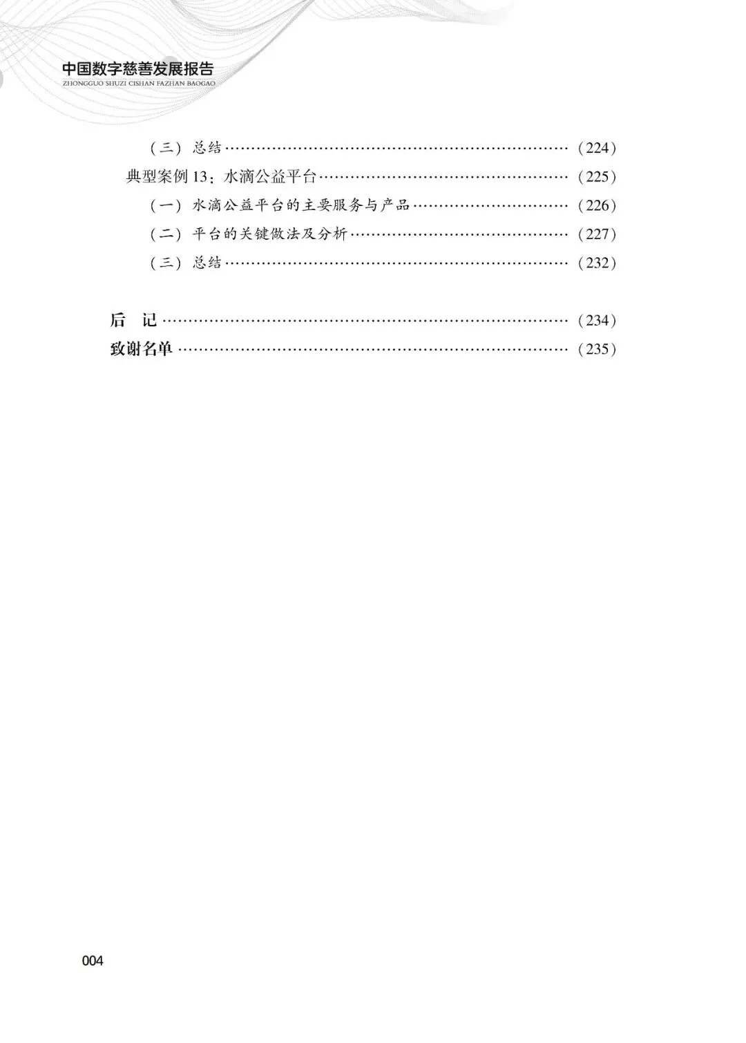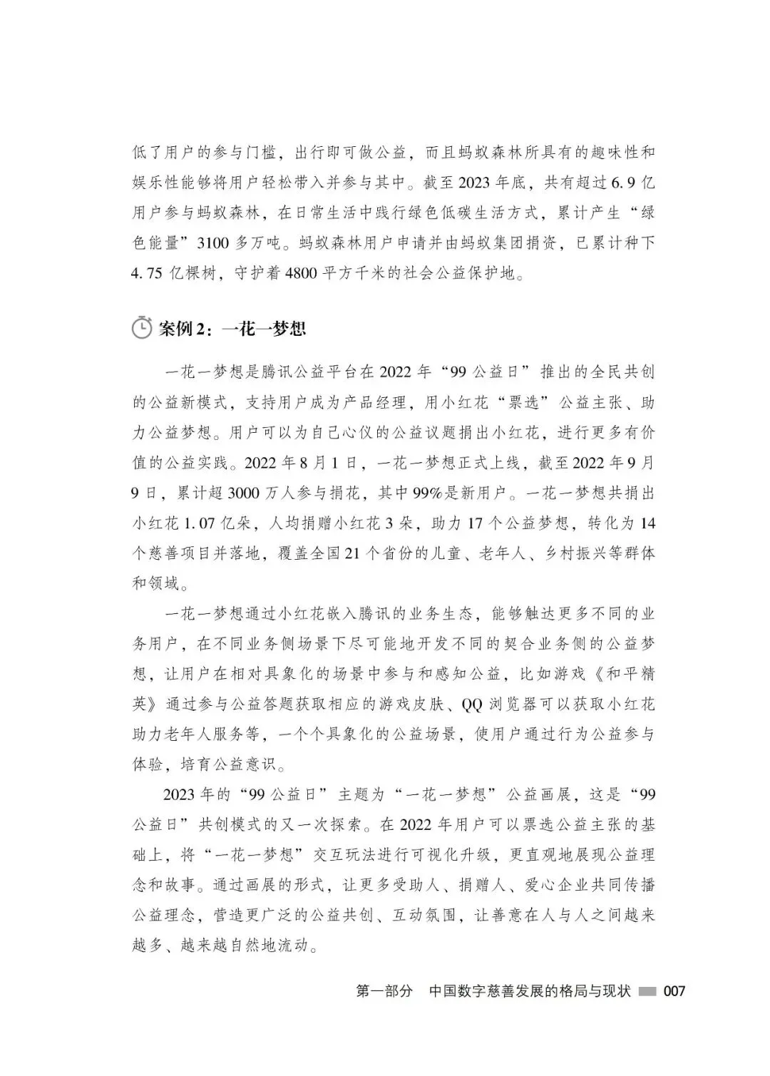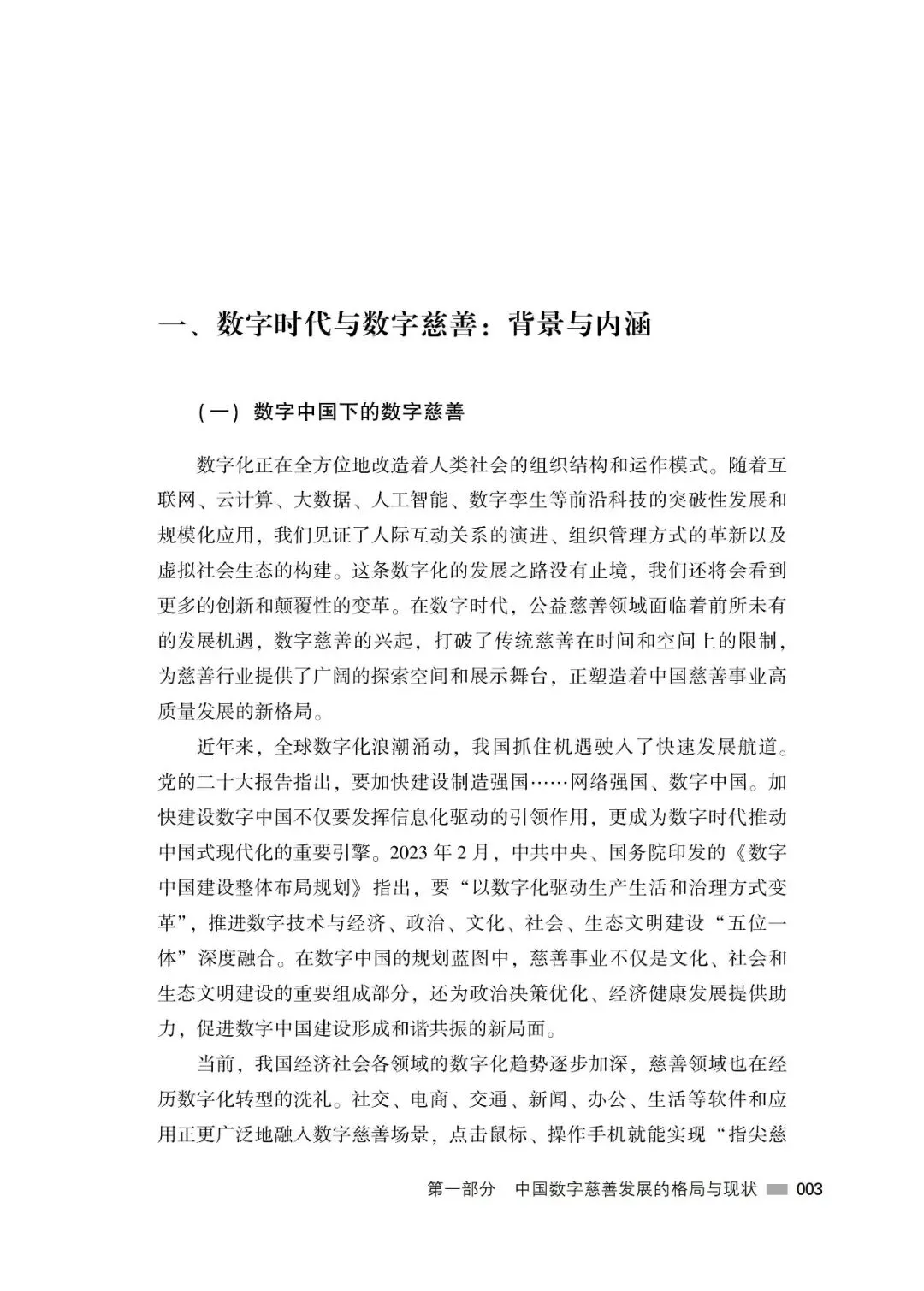 数字慈善是数字中国建设的重要组成部分,在创新基层社会治理、助力抗击自然灾害、参与教科文卫体和环境保护等方面发挥着不可或缺的作用。本书的出版,希望能为广大公益慈善组织、互联网企业、慈善领域研究机构以及社会公众了解、研究、参与数字慈善提供一份较为全面的参考,为我国慈善事业的健康、有序、高质量发展尽微薄之力。