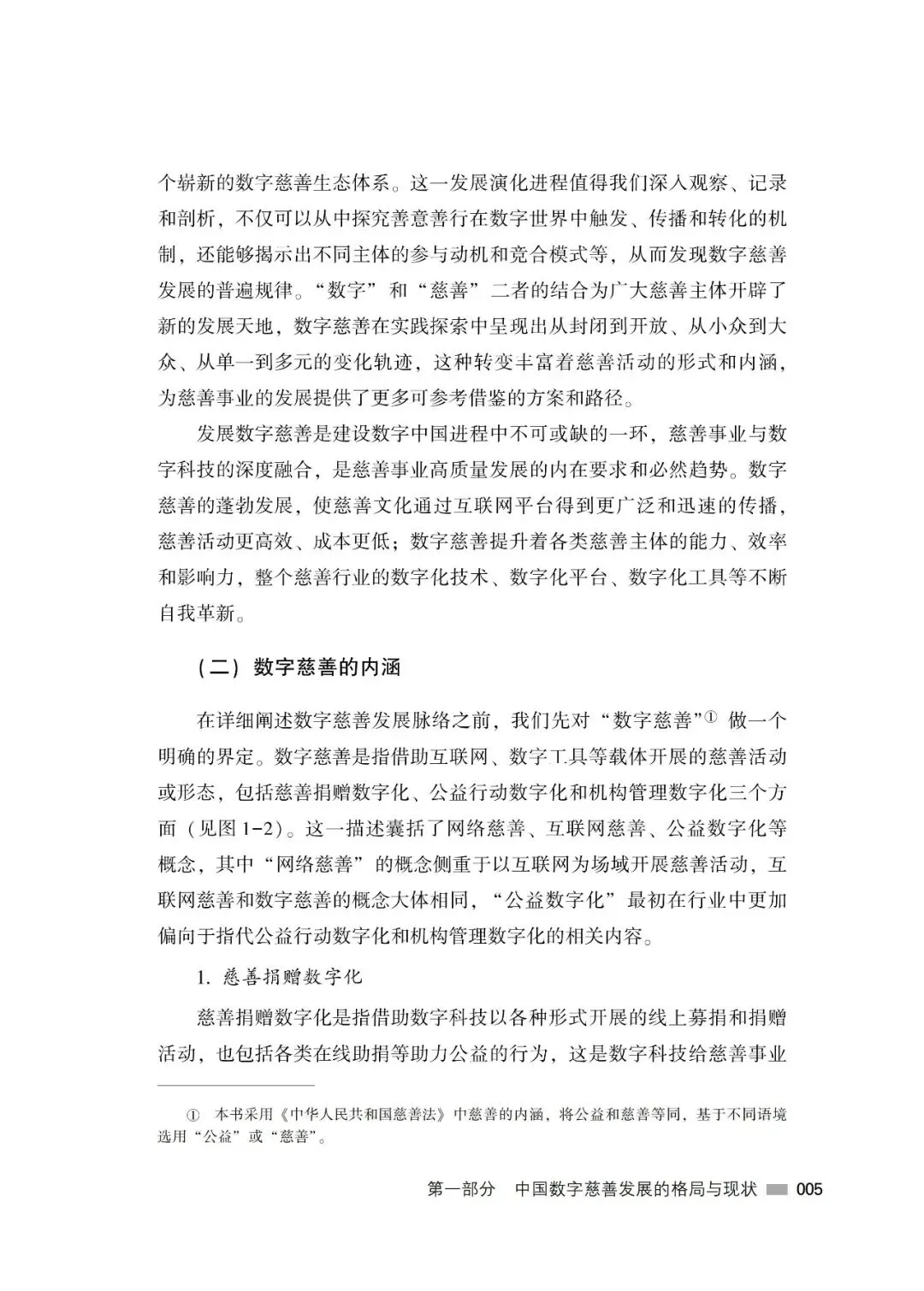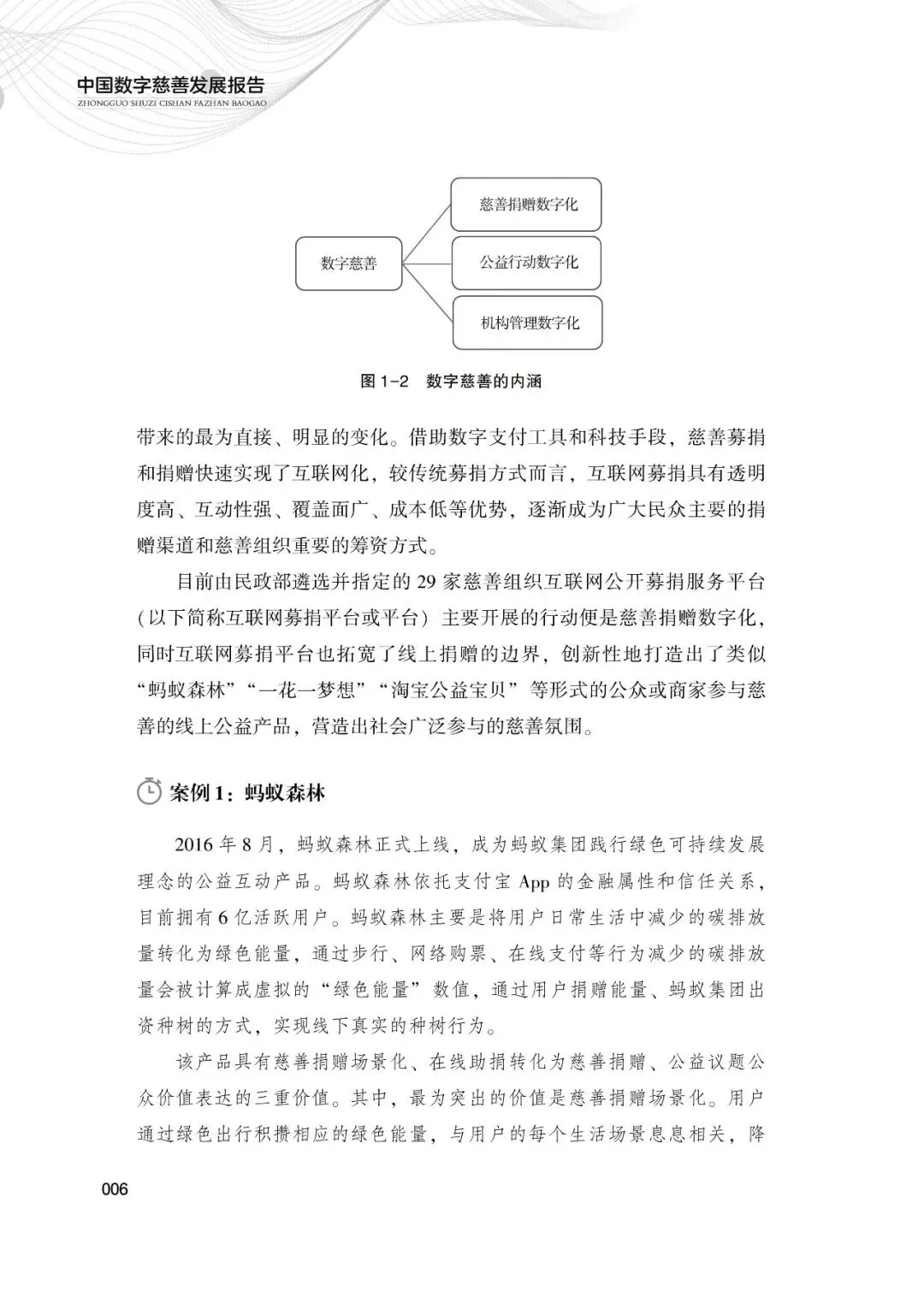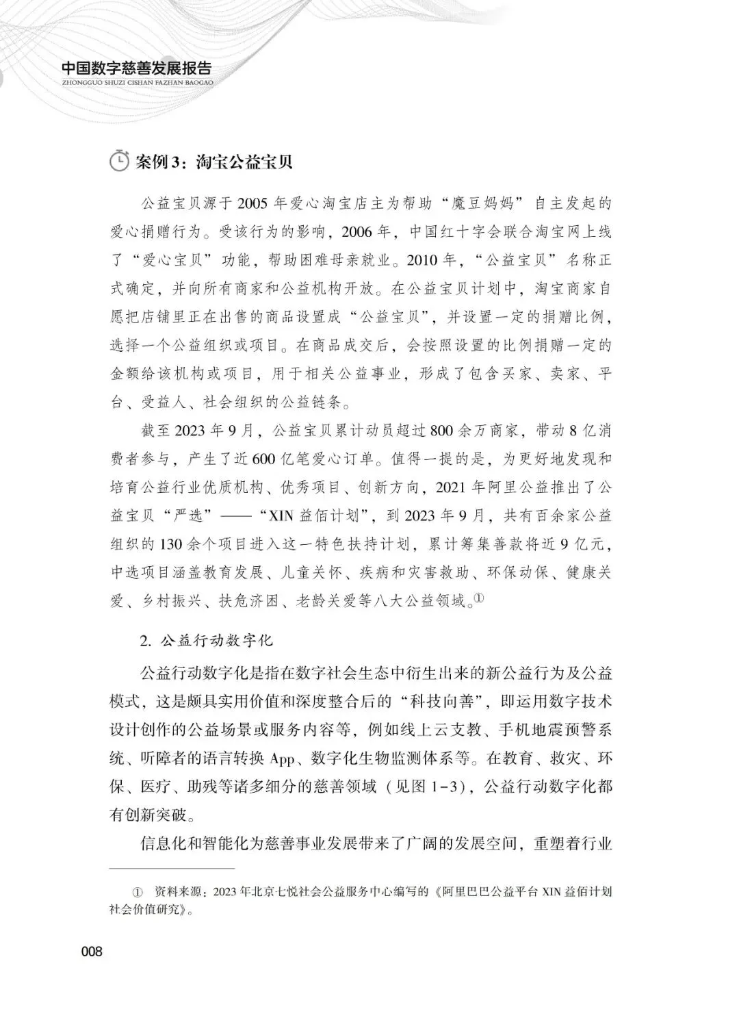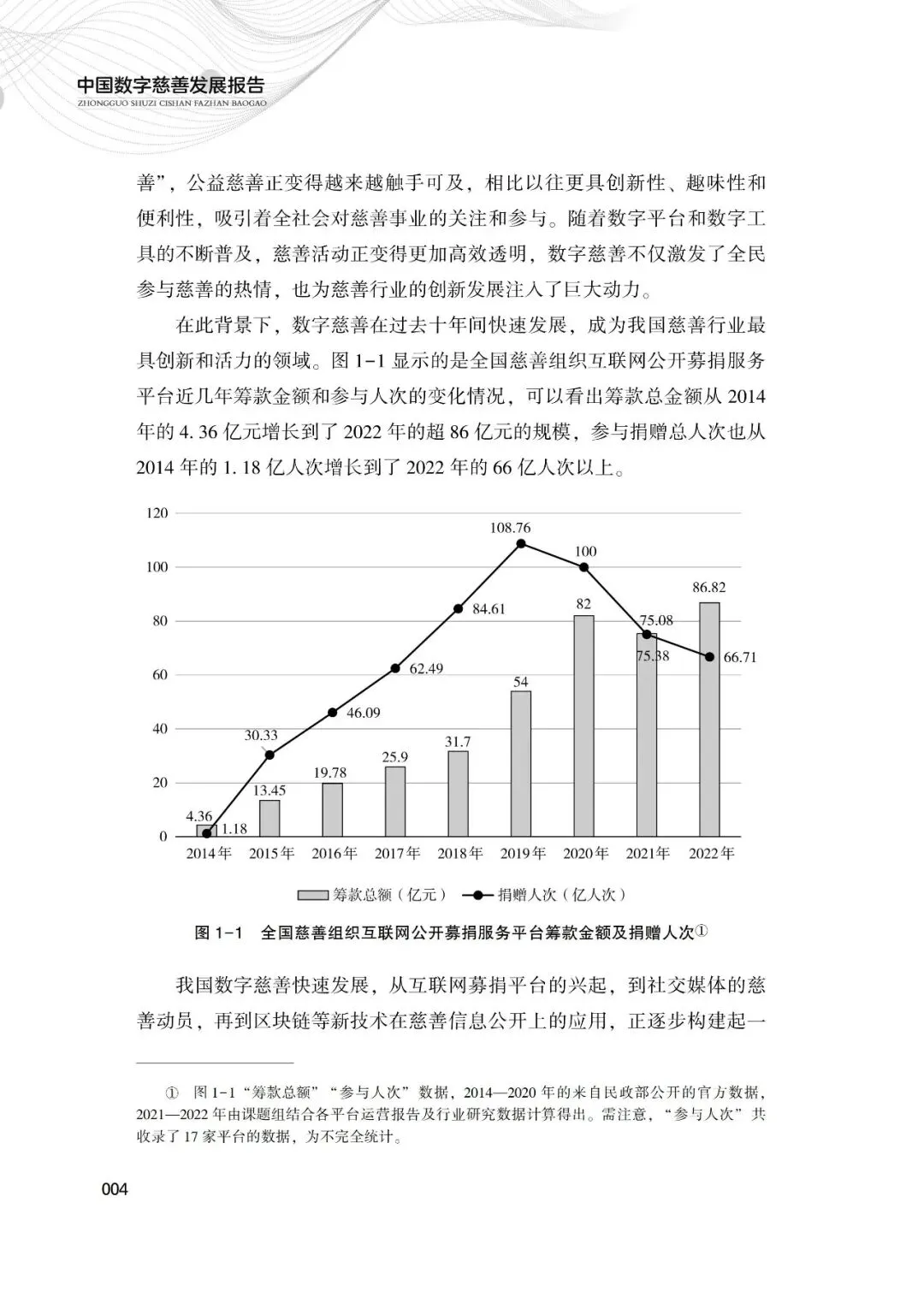 本报告主要是对中国数字慈善做一次较为全面而深入的分析总结,集中展现数字慈善的内涵类型、发展历程、现状趋势、平台价值以及问题挑战等。