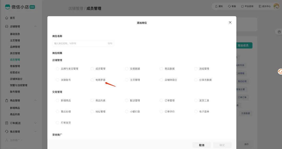 (3)权限设置:店员需有电商罗盘权限,才可以登录店铺罗盘查看。
