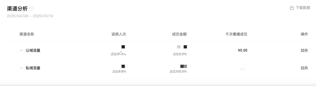直播数据概览 | 直播内容力及转化力列表 | 直播流量渠道分析 |
