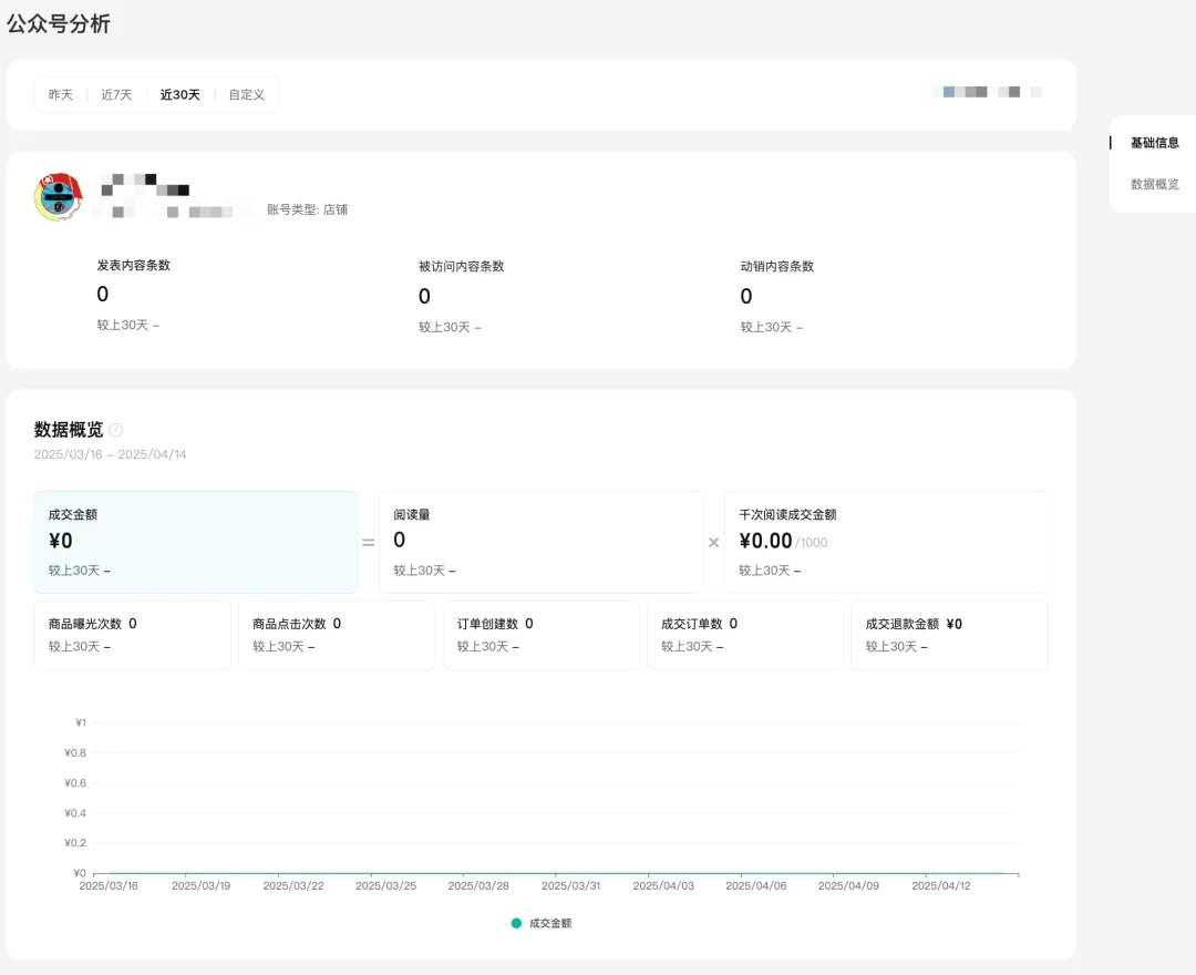 包括公众号近期的阅读、商品流量、成交数据。