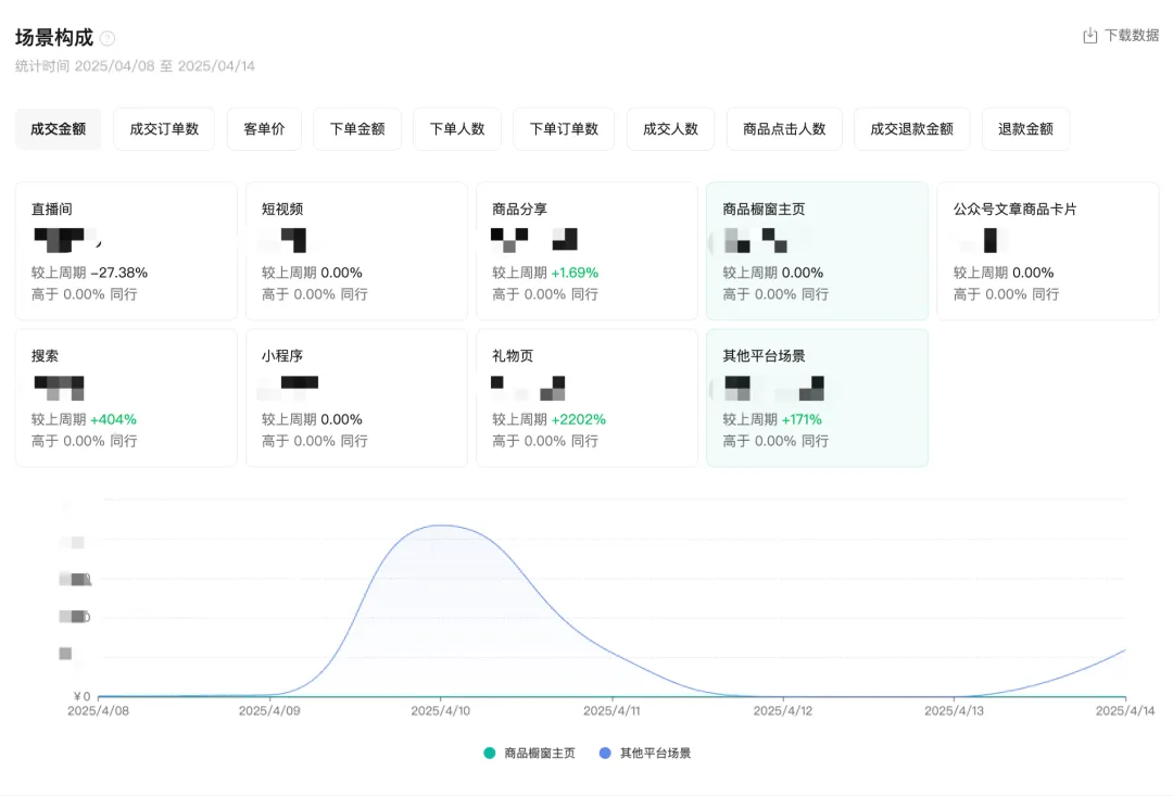 送礼场景支持拆解直播、礼物页、公众号等不同场景的转化效果,并支持查看用户从哪个渠道进入送礼页成交,进而评估运营效果。